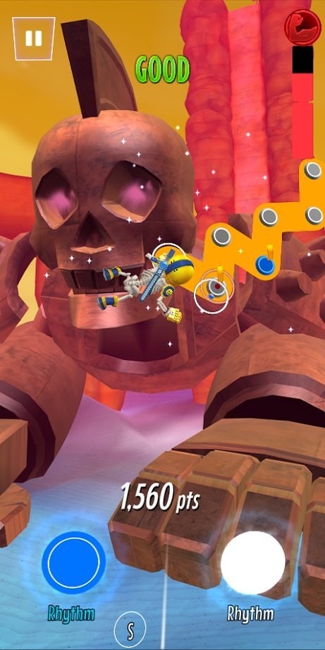4. 通过滑动屏幕控制角色左右移动和跳跃,跟随音乐节奏攀岩。