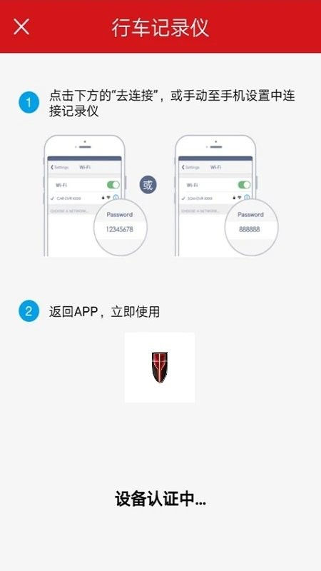 2. 用数据线连接行车记录仪与手机。